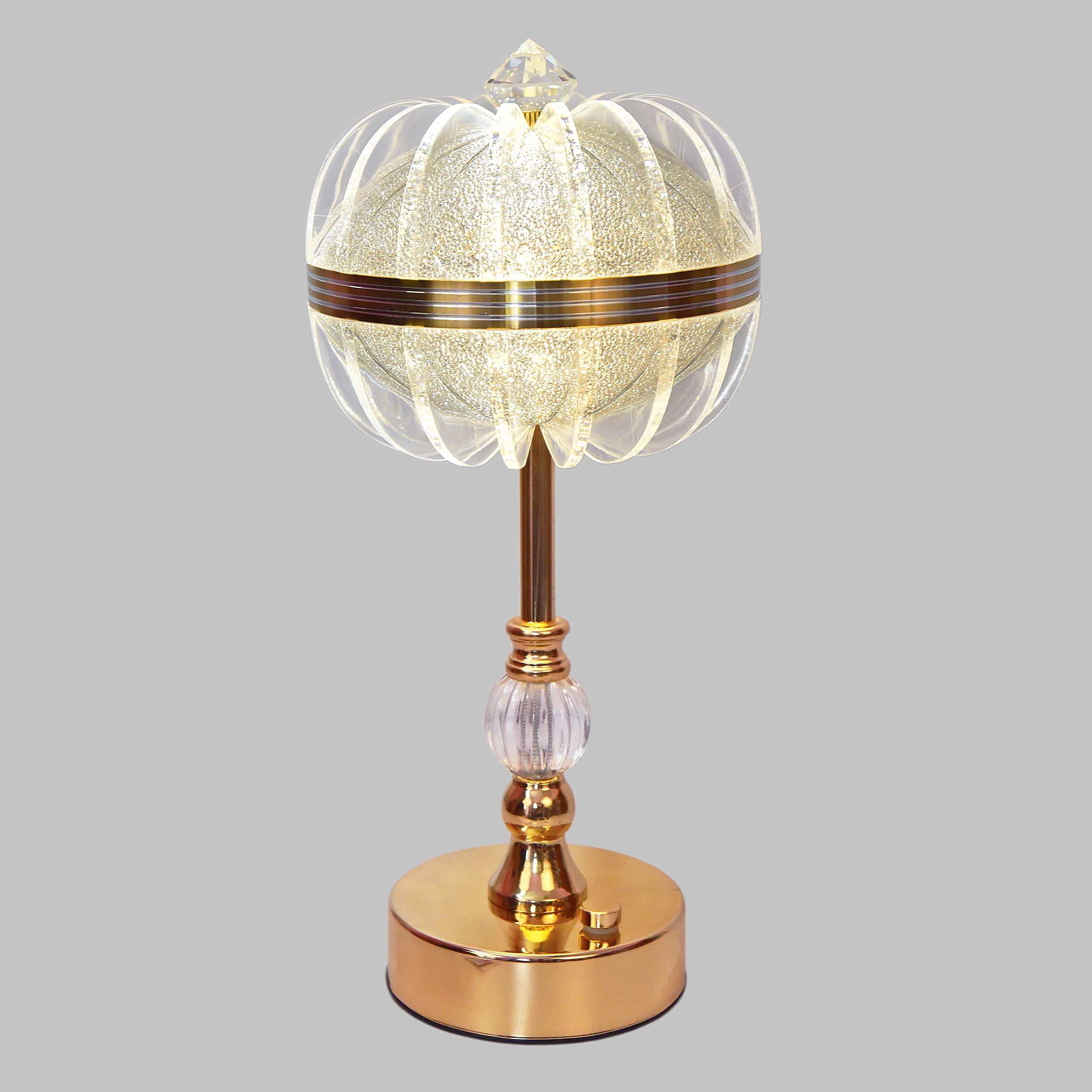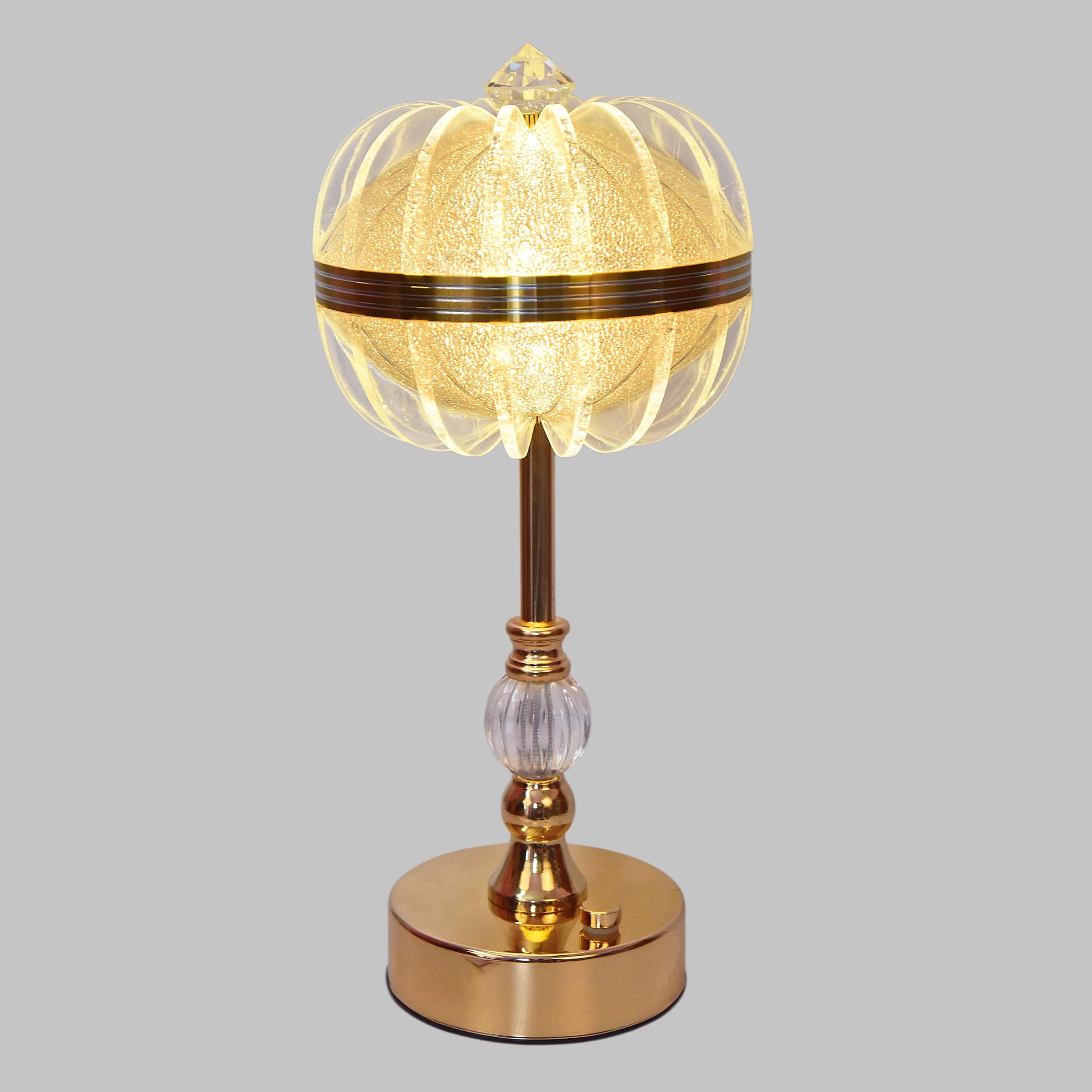 Choose from Golden, White, or Golden-White Mix to match your mood or décor style/ Easy-to-use touch switch for turning on/off and changing light colors with a simple tap./ Works with USB cable or rechargeable battery, making it convenient and portable./14-inch tall crystal glass shade with a luxury golden stand enhances modern and classic interiors/ Ideal for bedrooms, living rooms, offices, and festivals. A stylish gift for weddings, housewarmings, or anniversaries.